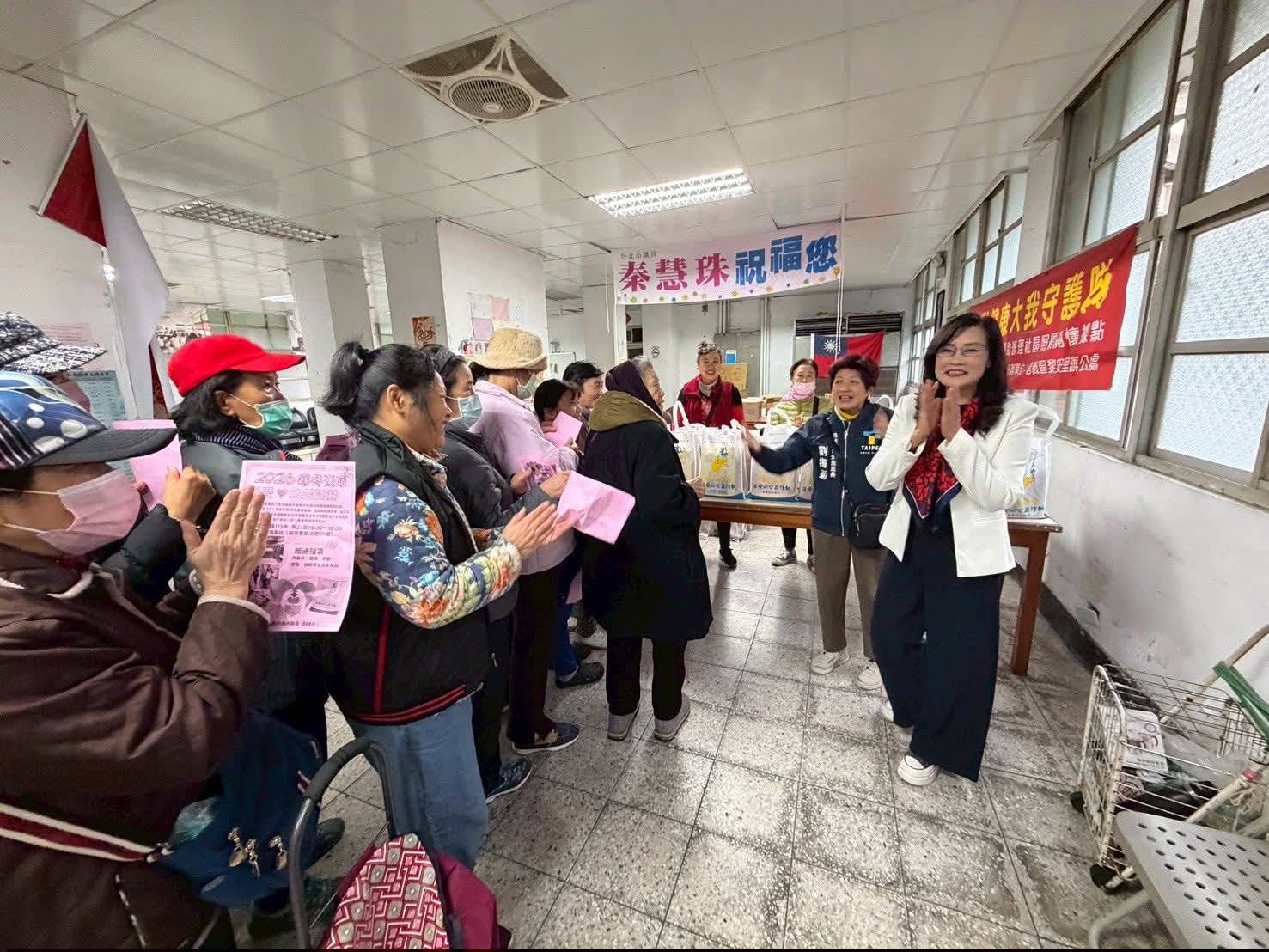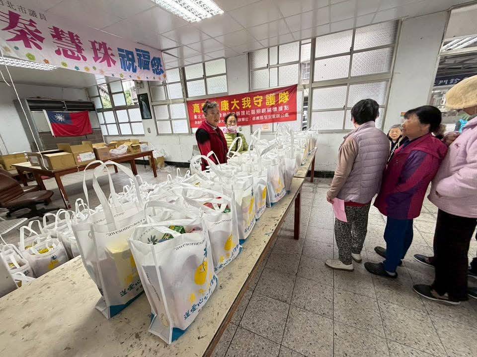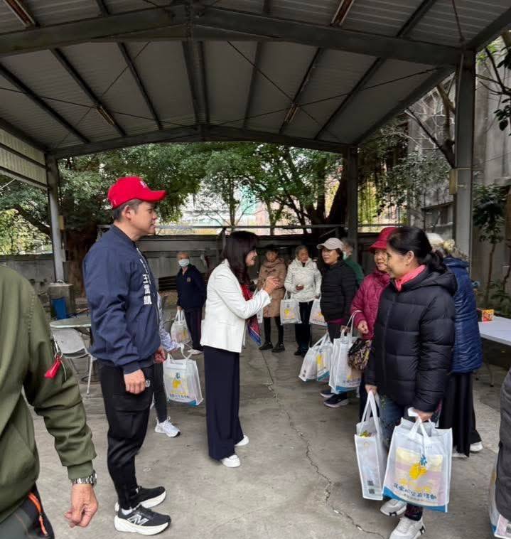 公益活動的安排十分密集,秦慧珠接連跑了三場活動,分別在吳興退舍、大我新舍和撫遠街400巷進行,讓寒冬中需要幫助的長輩與居民們都能在年關之際得到溫暖的關懷。活動現場氣氛熱烈,志工們忙碌而有序,將提前準備好的米、麵條與生活必需品福袋,一一親手交到每位參與者的手中。