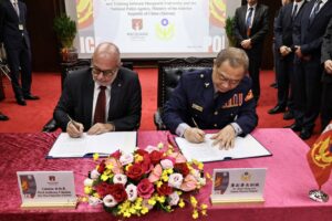 【記者 彭可可/綜合報導】為厚植我國警政人才之國際競爭力,並深化與國際刑事司法學術機構之合作,警政署與澳洲麥考瑞大學(Macquarie University)於今日上午11時舉辦教育訓練合作備忘錄簽署儀式,由副署長廖訓誠與該校全球事務副校長Anthony Cahalan代表簽署。
